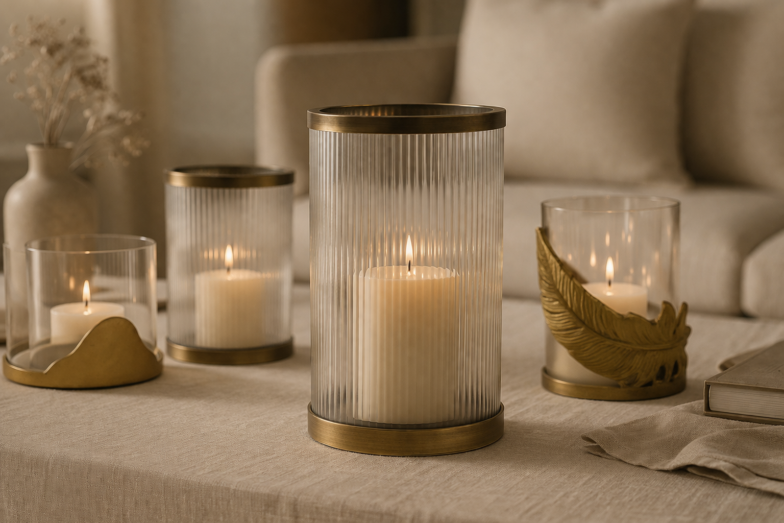 Atmosphere: Ribbed glass texture diffuses candlelight for a soft, Art Deco-inspired ambient glow.
